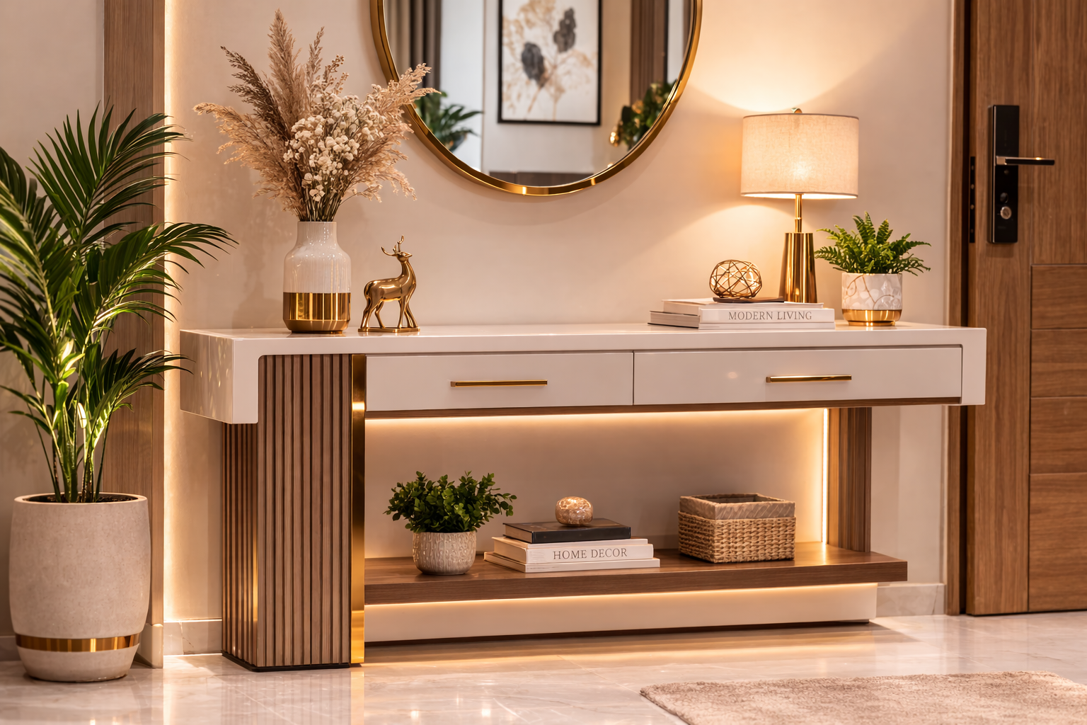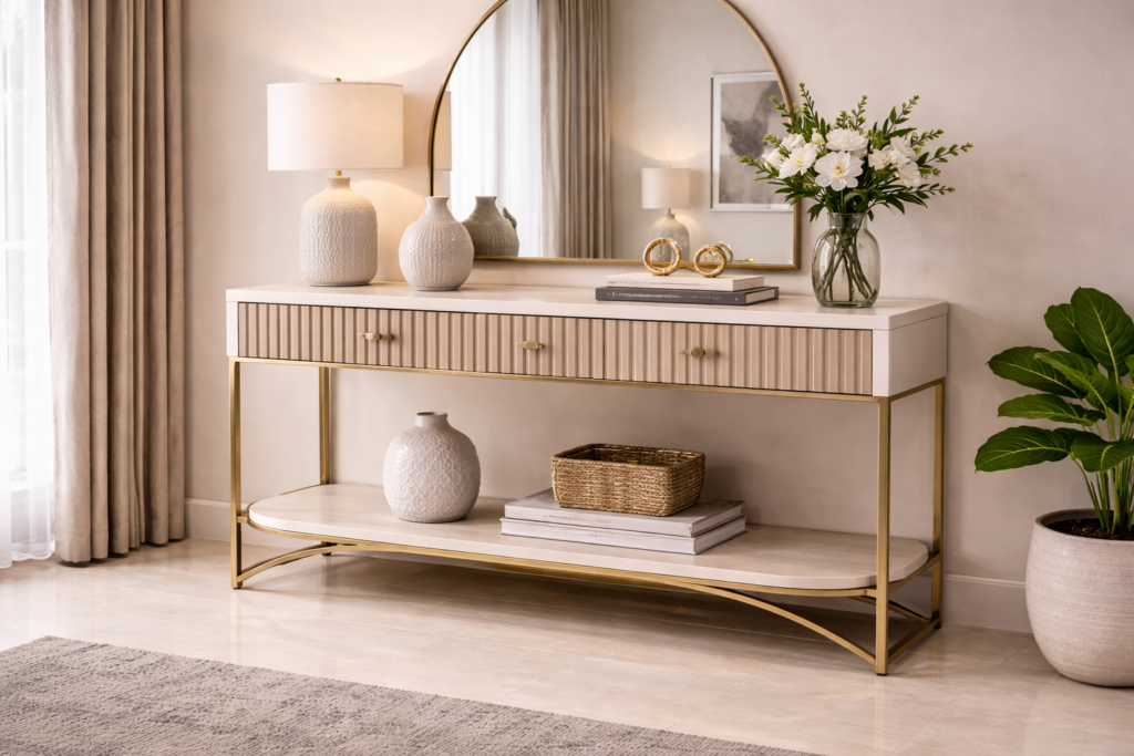 Console tables can be placed in entryways, living rooms, hallways, or behind sofas to enhance the interior look.