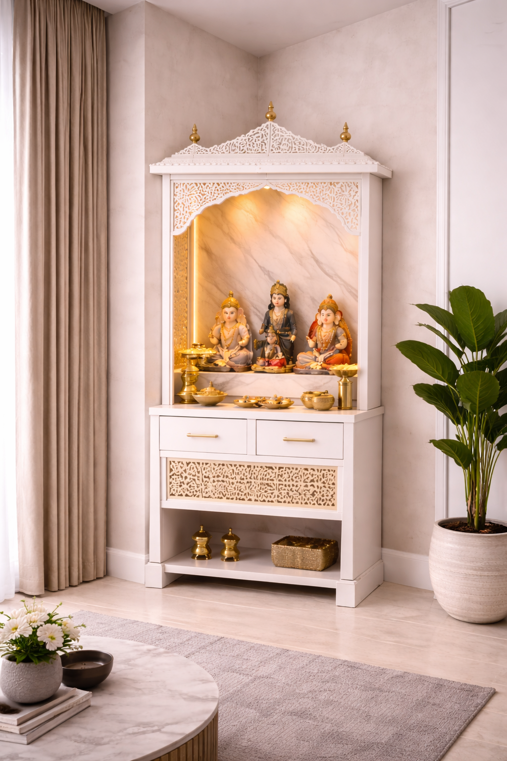 Elegant, durable, and maintenance free mandir designs for modern homes.