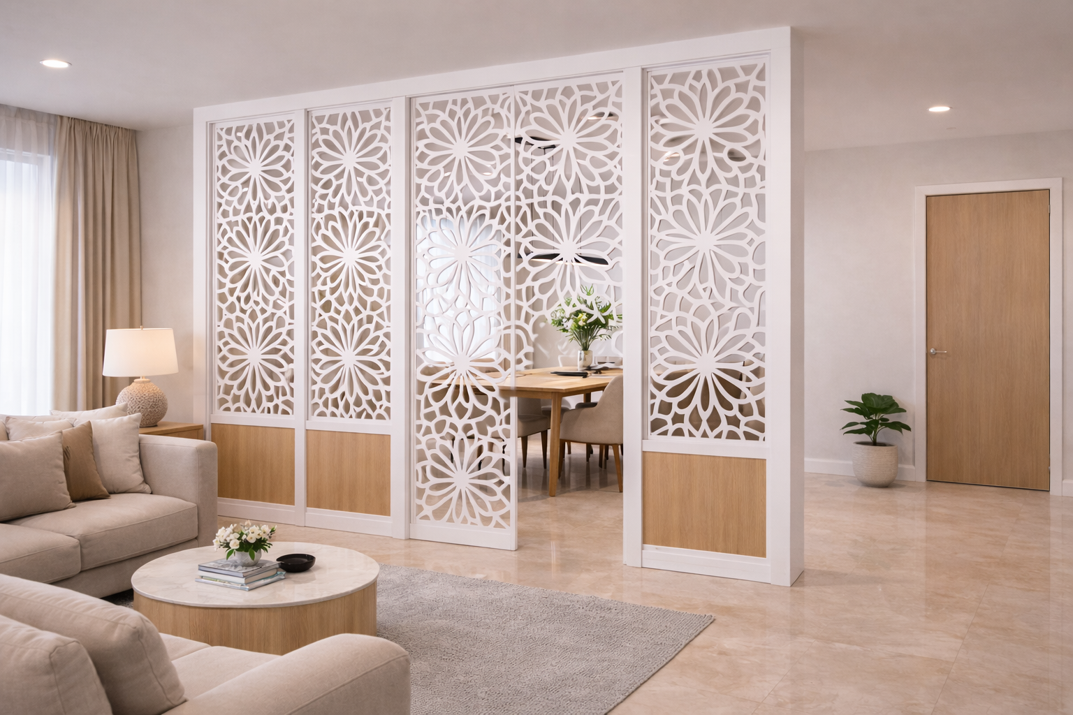 Stylish partitions that help separate living spaces while maintaining an open interior feel.