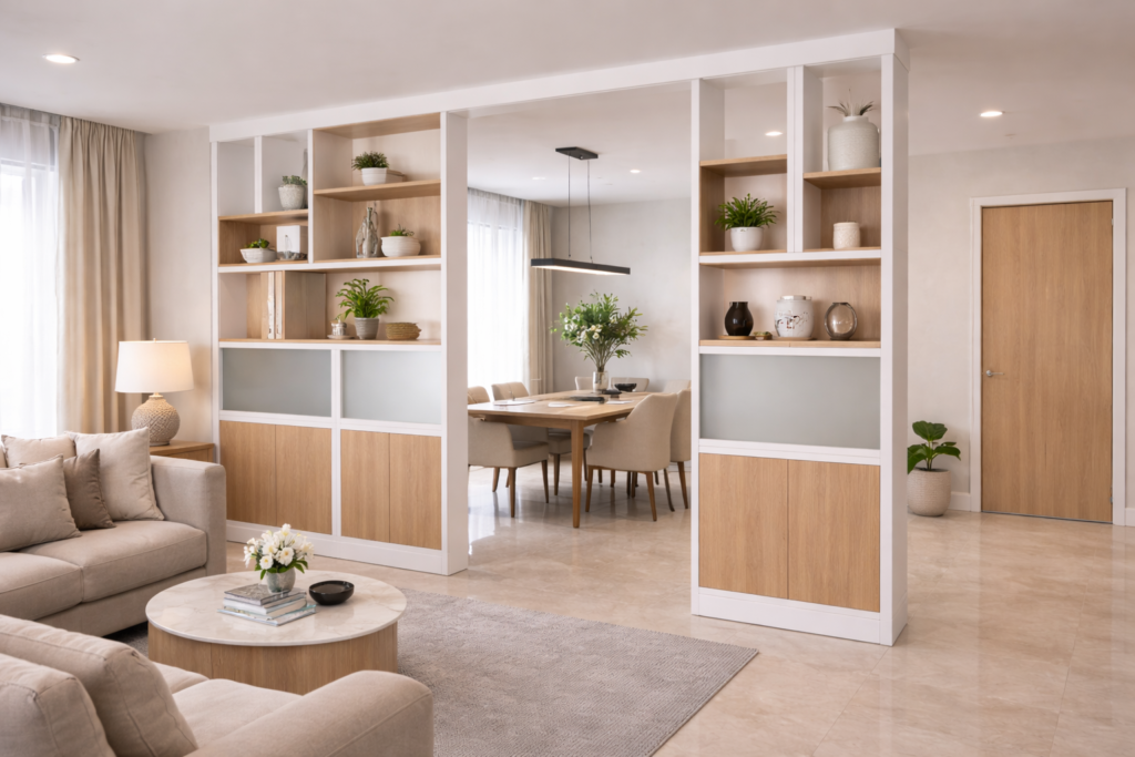 Stylish partitions that help separate living spaces while maintaining an open interior feel.